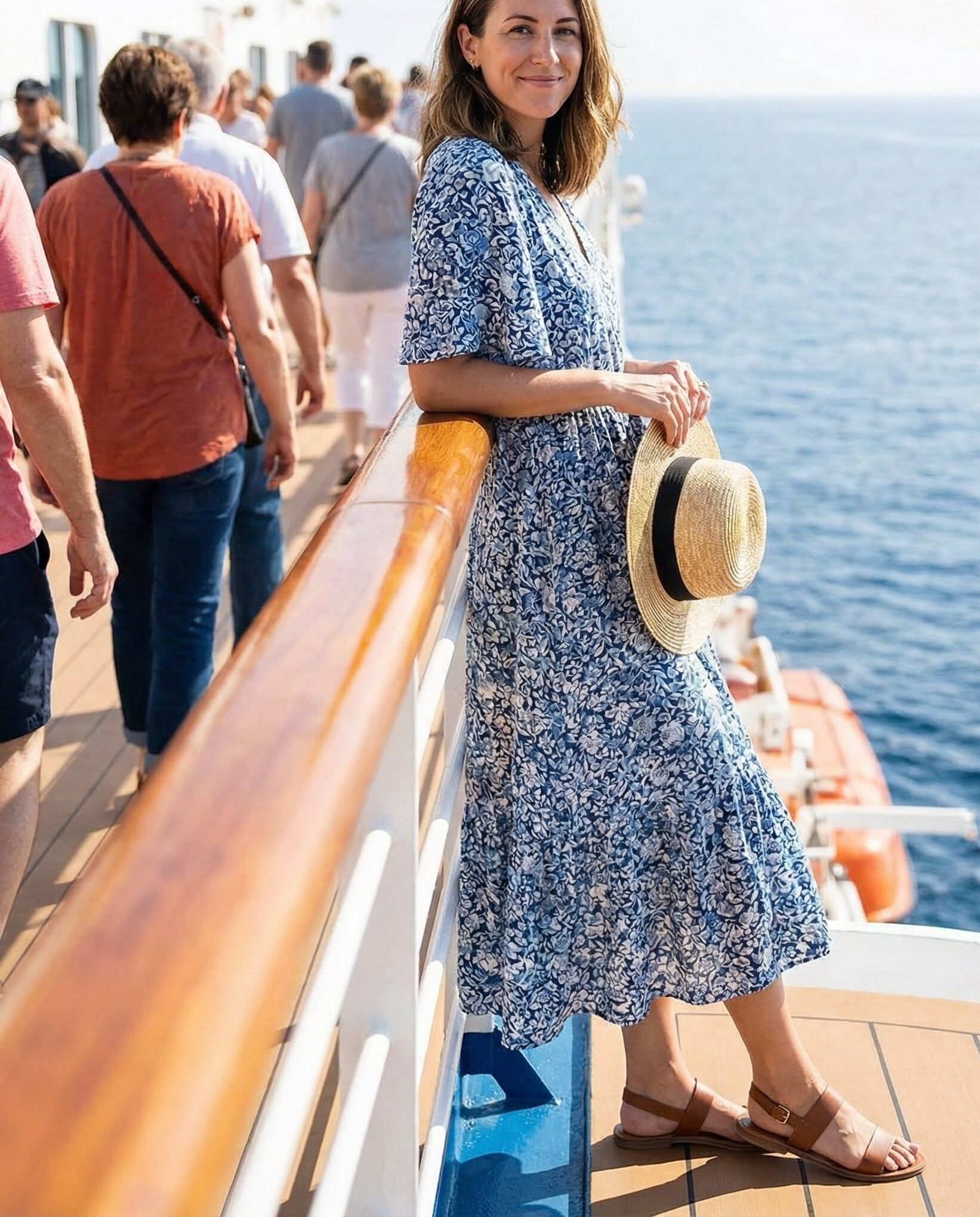 A flowy midi dress is a cruise essential. It’s feminine, comfortable, and easy to dress up or down. Pair it with flat sandals for daytime activities or casual dining onboard.