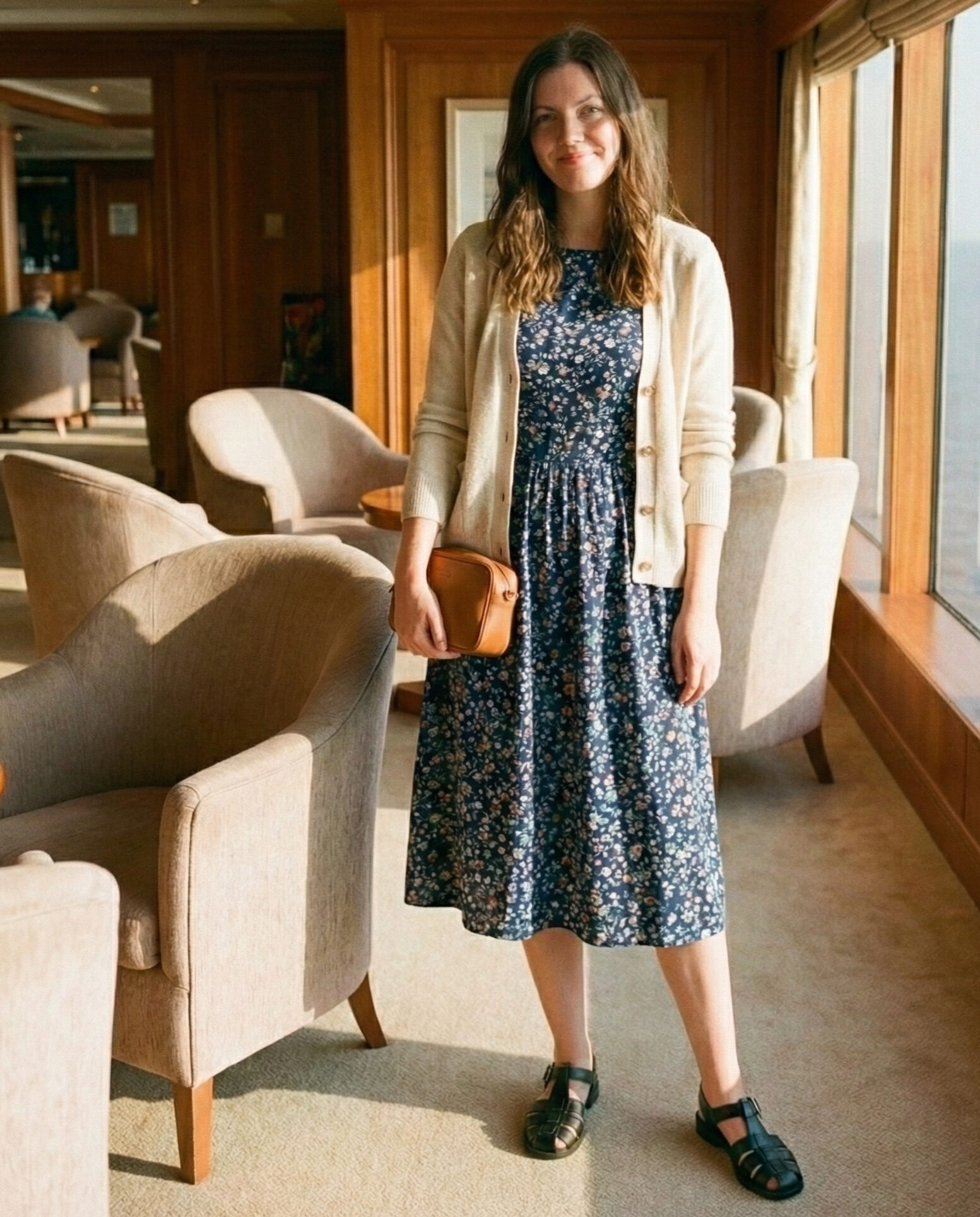 A knee-length or midi dress layered with a cardigan is perfect for breezy evenings. This look transitions easily from daytime exploring to nighttime shows.
