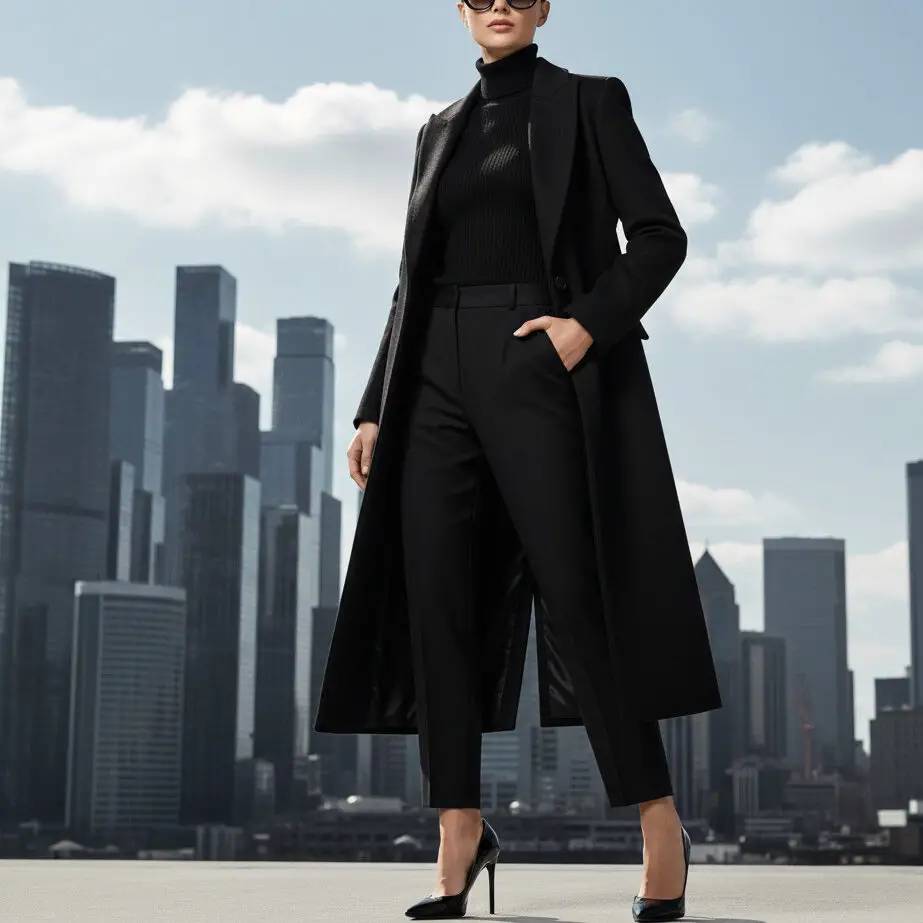 A black trench coat outfit is more than a wardrobe staple — it’s an instant confidence boost. Whether you’re heading to work, traveling, or stepping out on a cold evening, it defines effortless sophistication and classic allure.