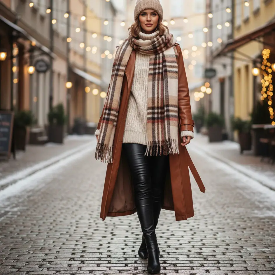 This season, fashion lovers on TikTok and Pinterest are embracing trench coat styling in earthy tones like camel, chocolate, and tan. From casual weekend looks to elevated workwear, a brown coat outfit winter version adds the perfect touch of class.