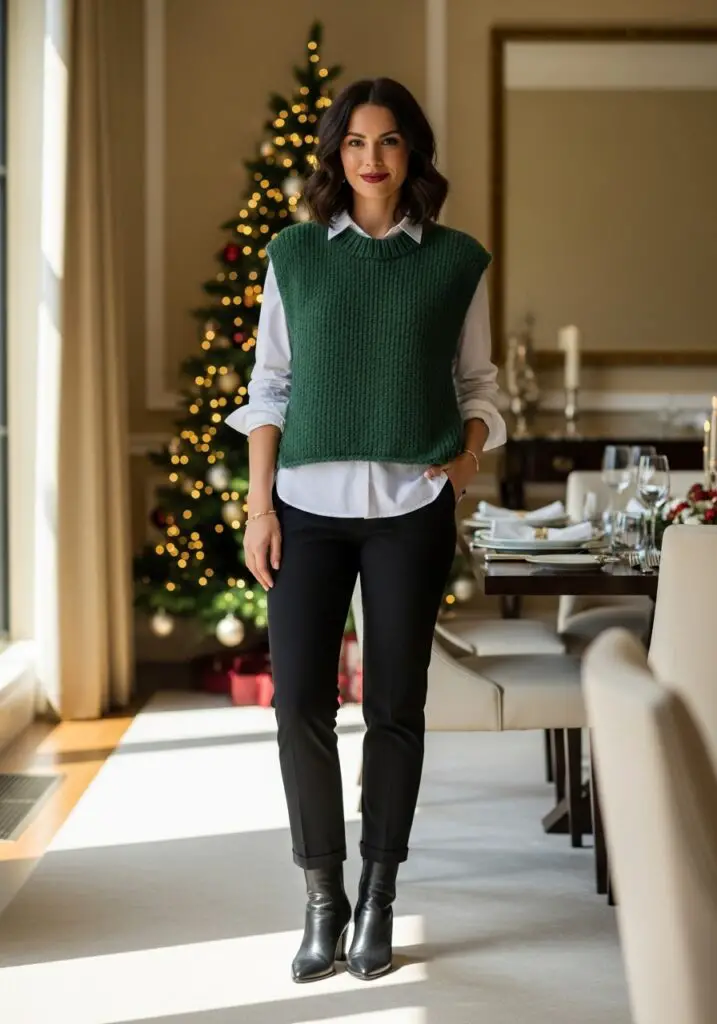A relaxed interpretation of Cozy Christmas Dinner Outfit Ideas.