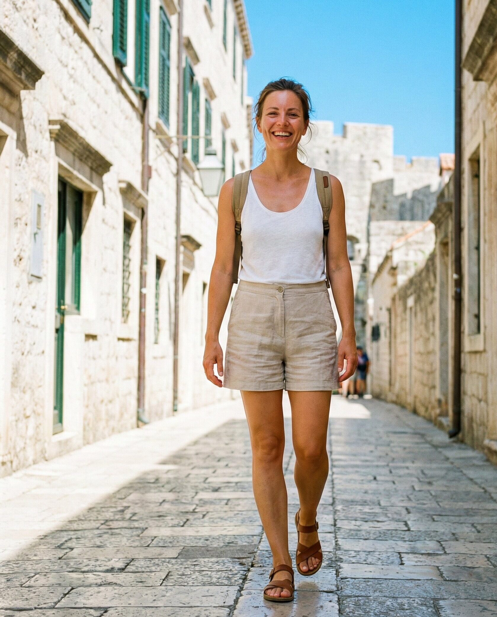 Linen shorts are a must for hot Croatian afternoons. They’re breathable, stylish, and easy to move in while exploring seaside villages. Pair them with a simple tank top and flat sandals for a relaxed, beach-ready vibe that still looks polished.