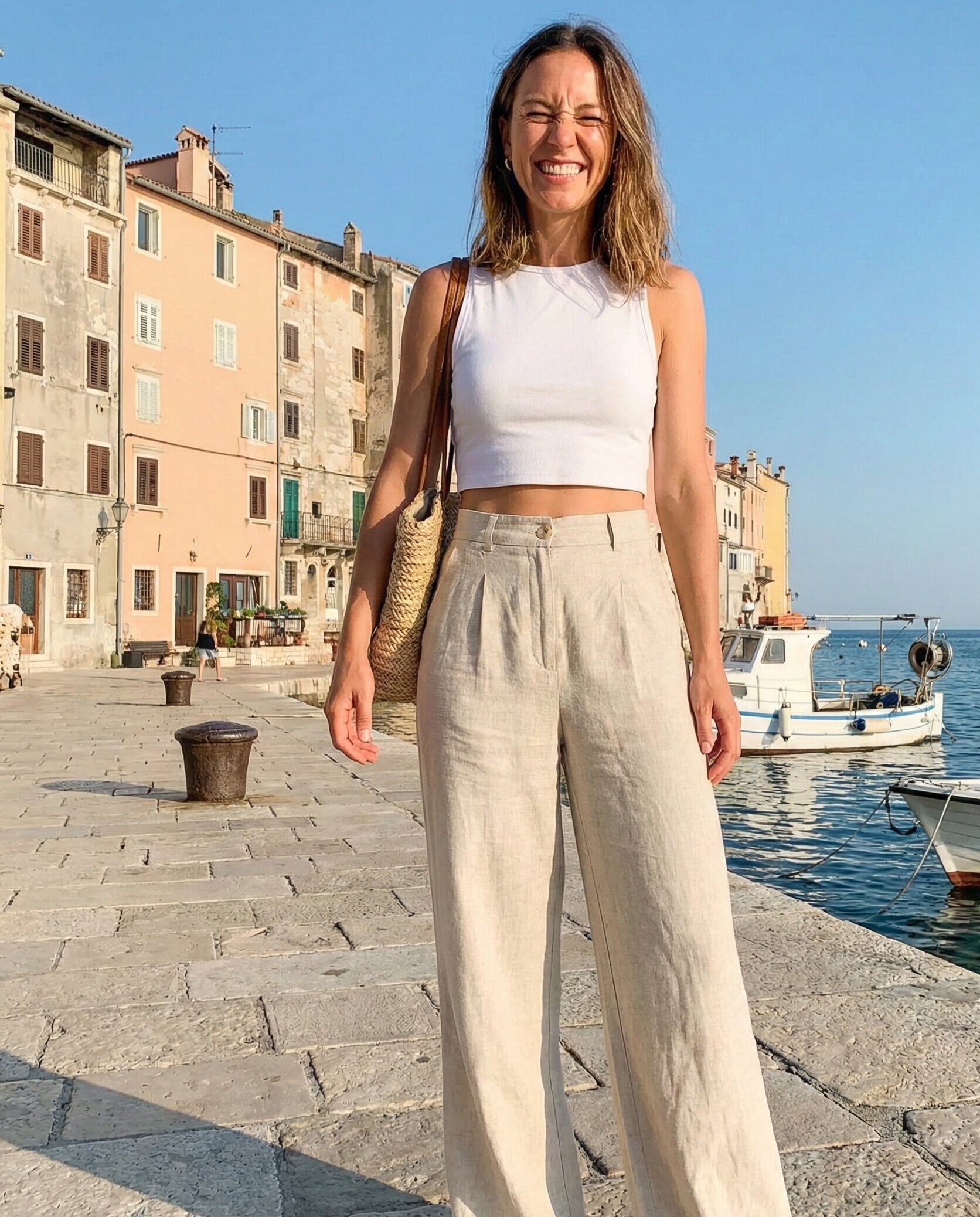 Wide-leg linen pants feel airy and elegant under the Croatian sun. Paired with a simple crop top, this outfit balances comfort and style. It’s perfect for exploring historic cities while staying cool and effortlessly fashionable.