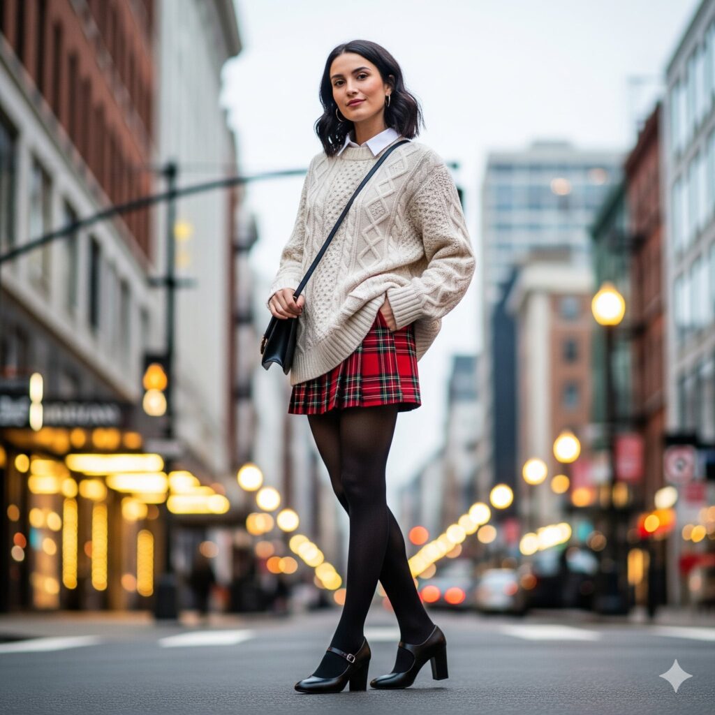 Layer a cozy sweater over a mini skirt, add tights, and finish with Mary Janes for a school-girl chic style.