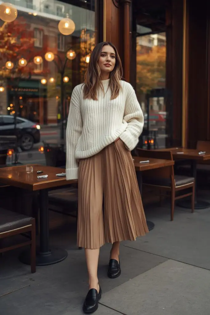 2. Oversized Sweater + Pleated Skirt + Loafers