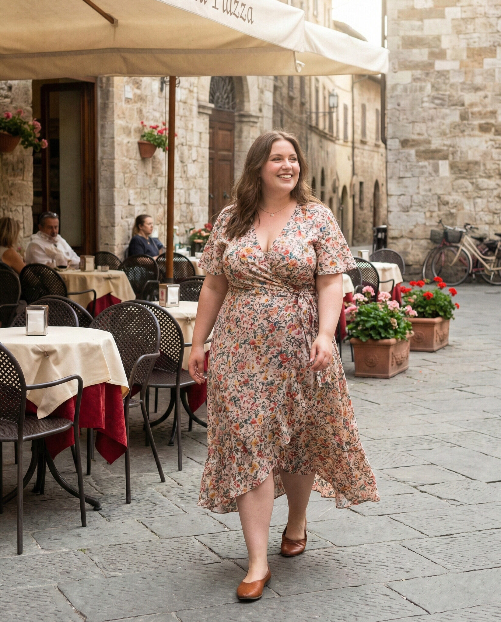 Wrap dresses beautifully highlight curves while allowing adjustable comfort. Ideal for Italian city strolls and café visits, this outfit feels feminine and polished. Pair it with breathable flats to stay comfortable while exploring charming streets and historic landmarks.