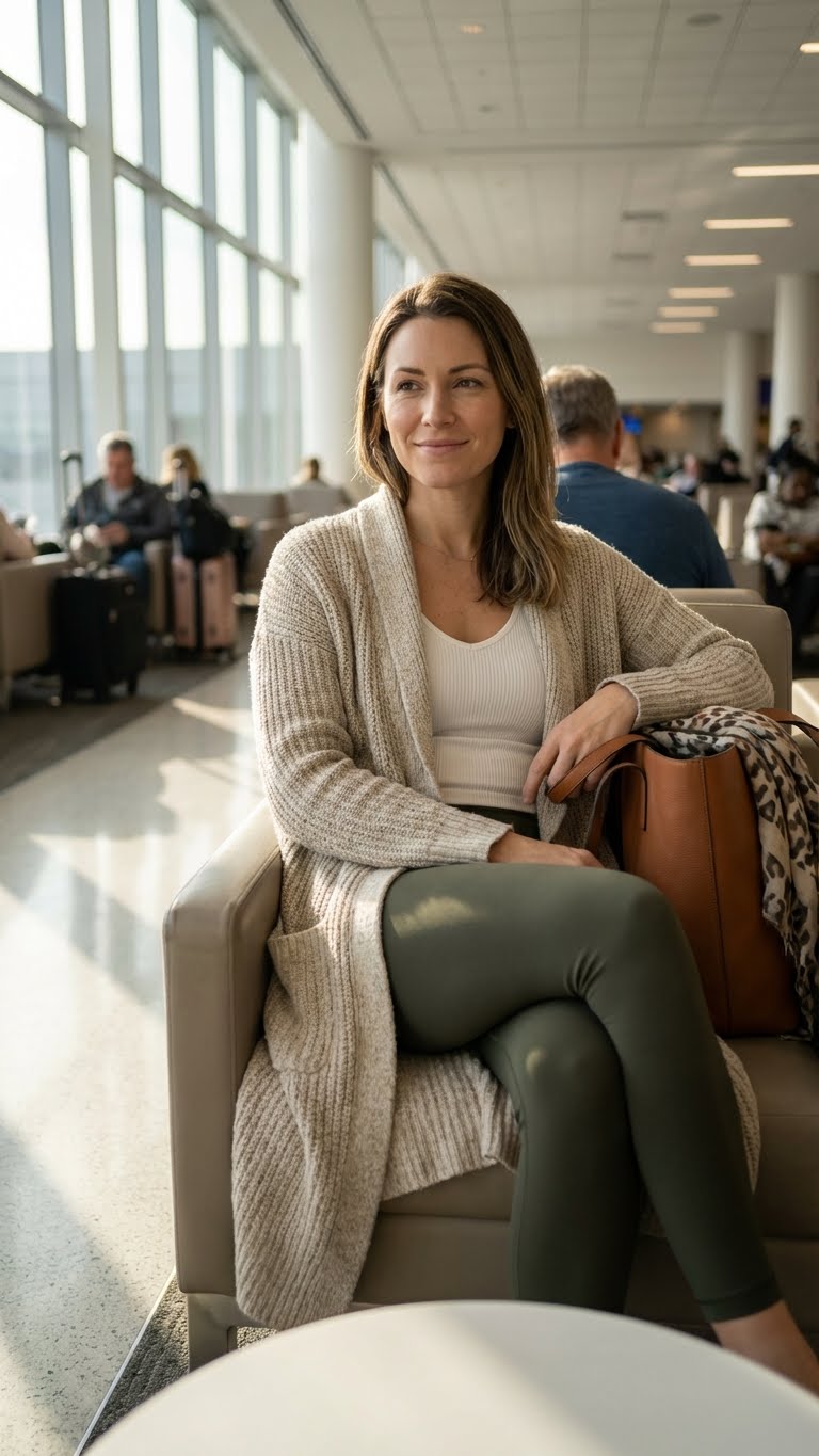 Spring airport outfits often include breathable fabrics, cozy layers, stretch-friendly bottoms, and practical shoes that still feel fashionable.