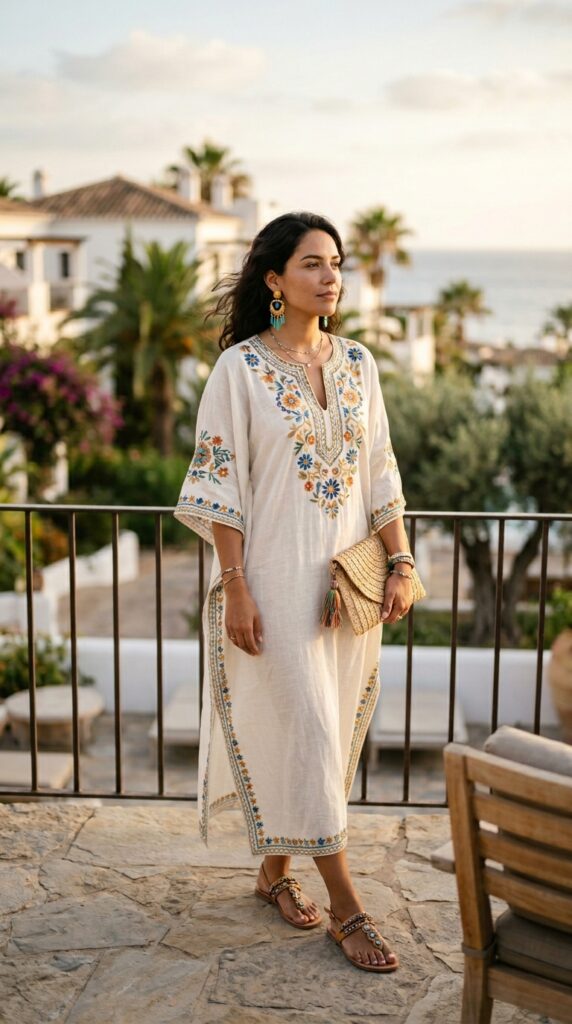A flowy kaftan with subtle embroidery or prints delivers instant resort glam. Add embellished sandals, bold earrings, and a clutch for a sophisticated resort wear for women statement.