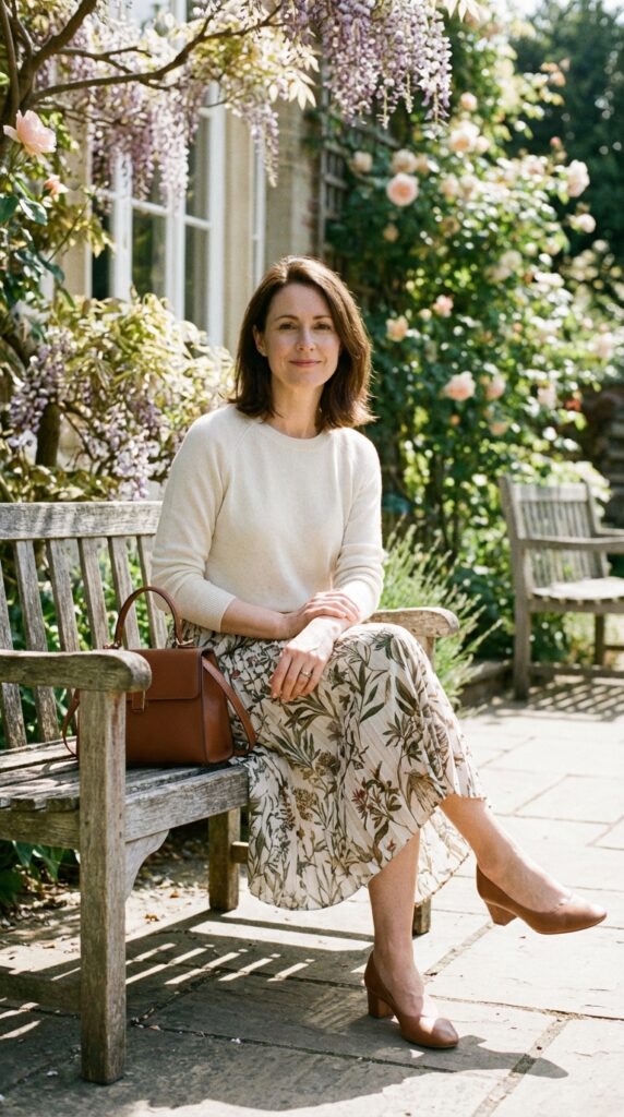 For cooler travel days, pair a lightweight knit sweater with a flowy midi skirt. Complete the look with sneakers or low heels and a structured bag for effortless elegance.