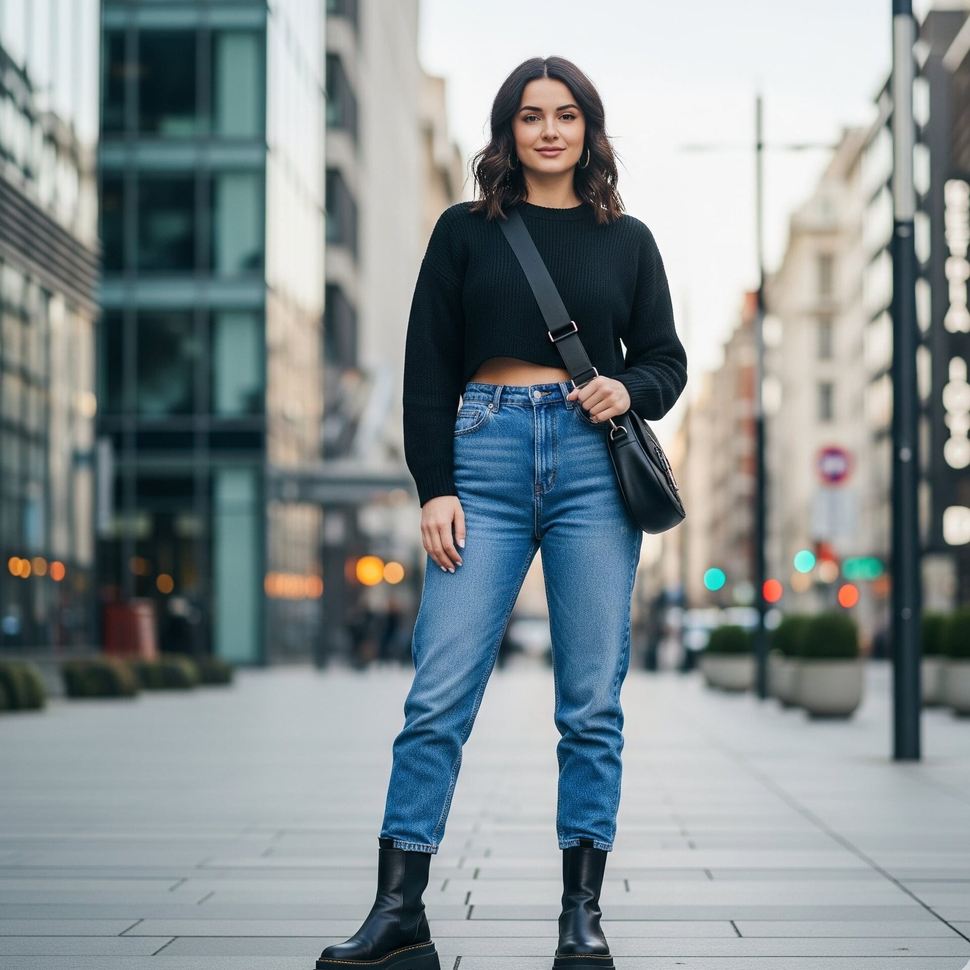 Show off your waistline with a cropped sweater styled with high-waisted denim. Finish with chunky boots or sneakers for a street-style edge.