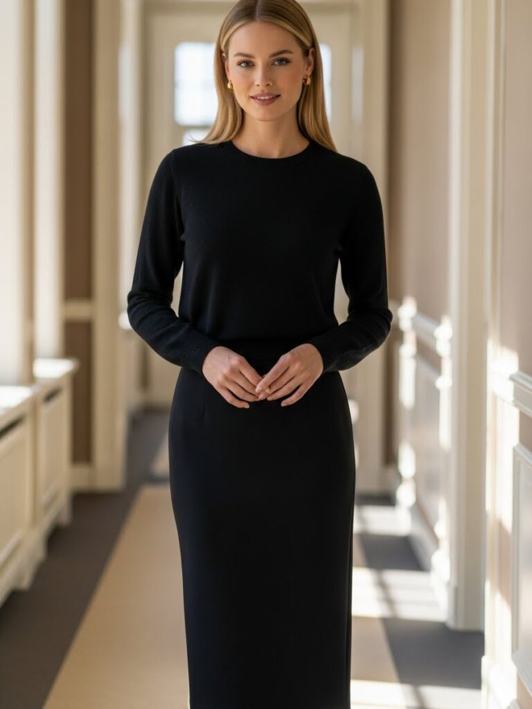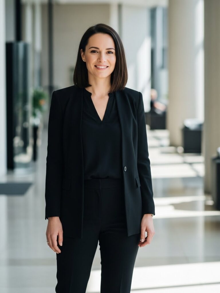 Whether you’re aiming for a classy all black outfit for women, a black business casual look, or an all black outfit casual classy enough for everyday wear, this aesthetic works in every professional setting.