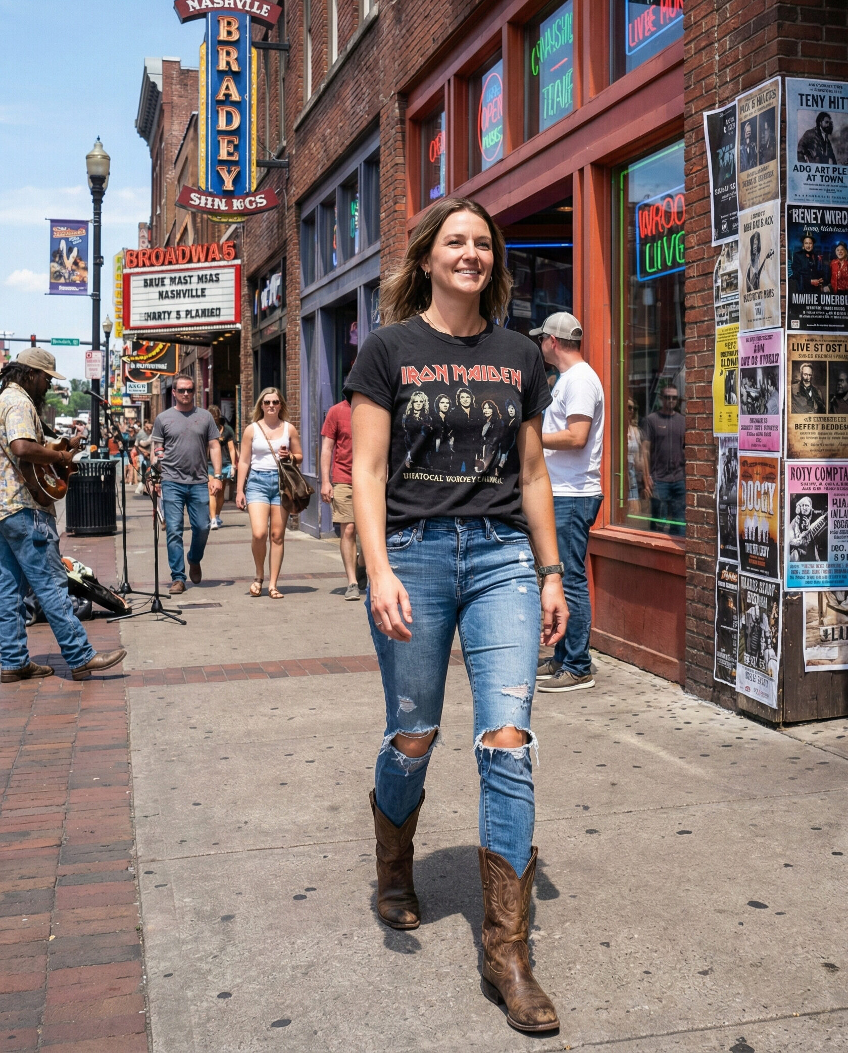 A little black dress becomes Nashville-ready when styled with western boots. This combo is chic yet playful, perfect for concerts or late-night bars. Add a belt or statement earrings to give the outfit a country-inspired twist.