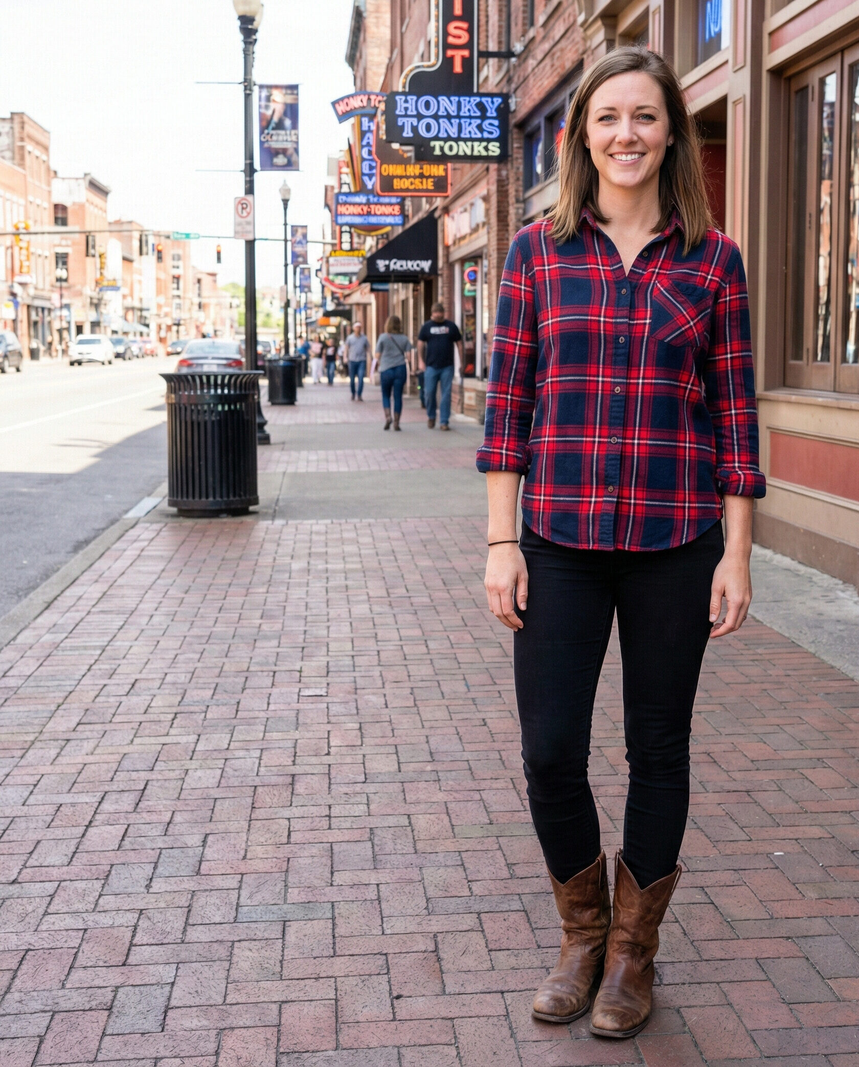 Plaid is a country staple that never goes out of style. Pair a plaid shirt with black skinny jeans for a relaxed yet put-together look. Roll up the sleeves and add boots for an easy outfit that fits right into Nashville nightlife.