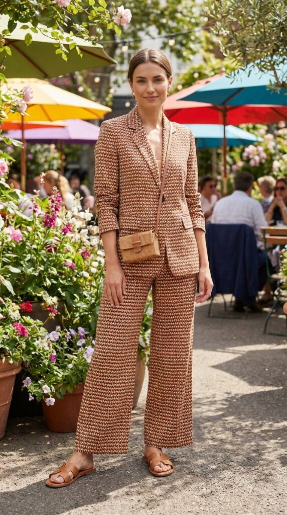 A bold printed matching set stands out while keeping styling simple. Pair with neutral sandals and a mini bag. This look is ideal for capturing that Summer In Nyc Outfit vibe with a playful, modern edge.