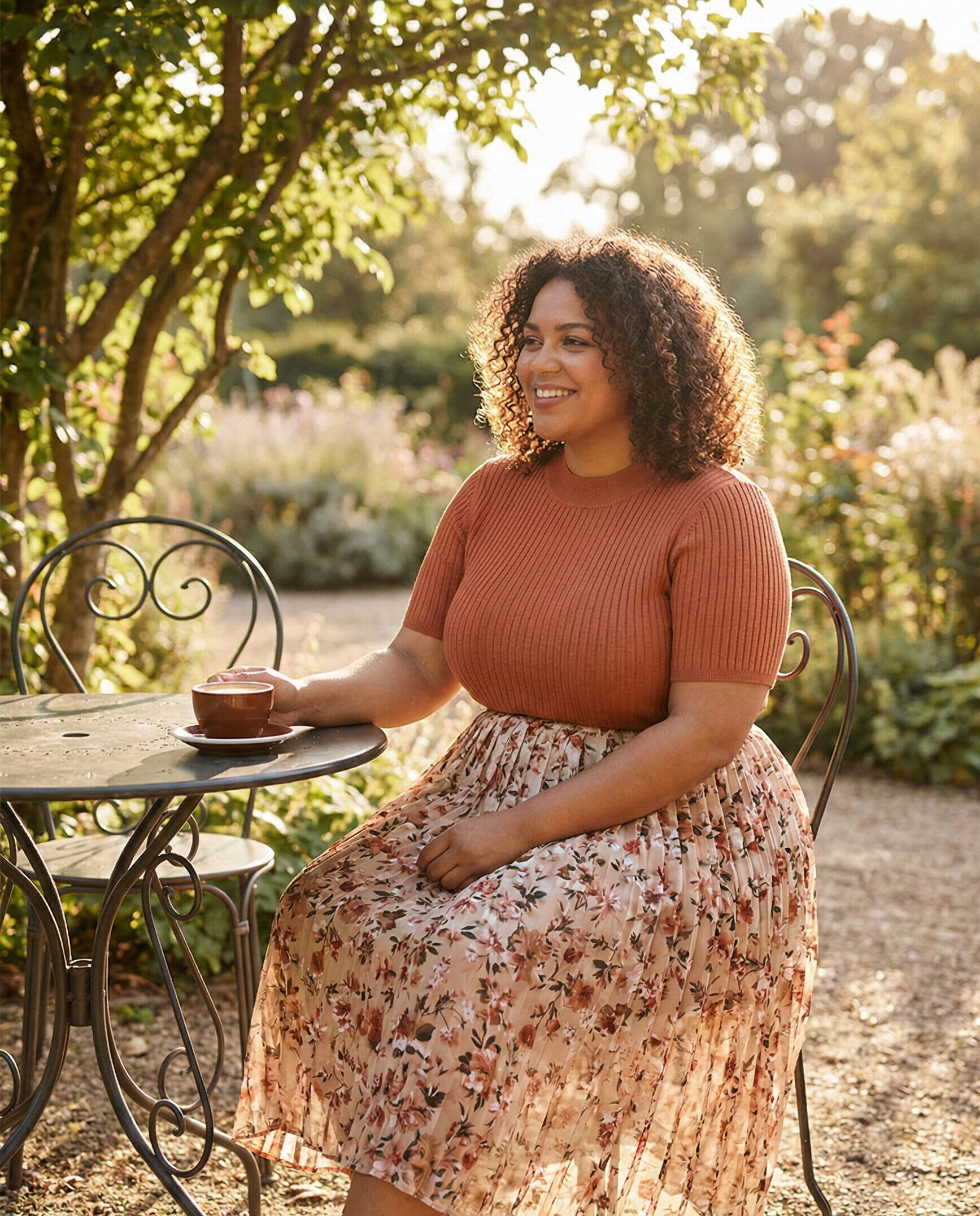 A fitted knit top combined with an A-line skirt creates a timeless, curve-friendly silhouette. The skirt skims the hips without clinging, while the knit top adds softness, making this outfit comfortable, feminine, and date-night appropriate.