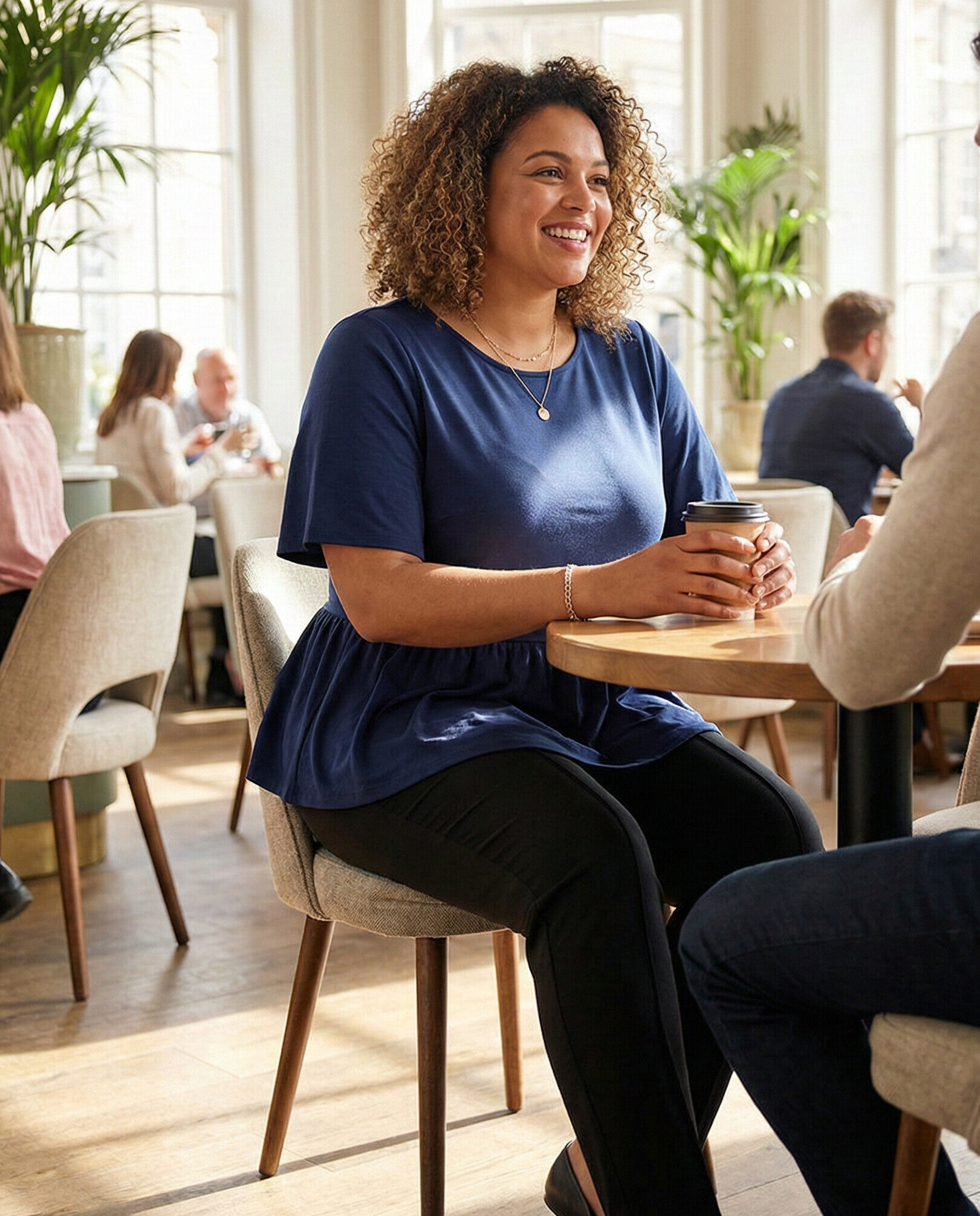 A peplum top highlights the waist while gently skimming over the midsection, creating a balanced silhouette. Paired with slim pants, this outfit feels feminine, flattering, and perfect for date nights that call for subtle elegance.