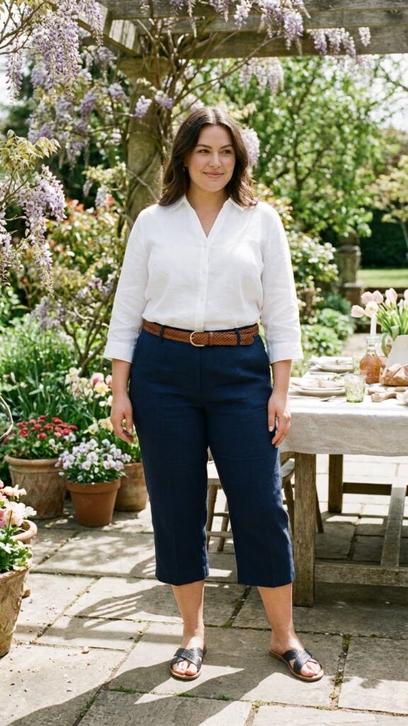 A linen blouse paired with tailored capri pants creates a breathable and structured spring outfit. The lightweight fabric keeps you cool, while the tailoring prevents the look from appearing too casual. This ensemble is perfect for daytime Easter events in warmer locations.