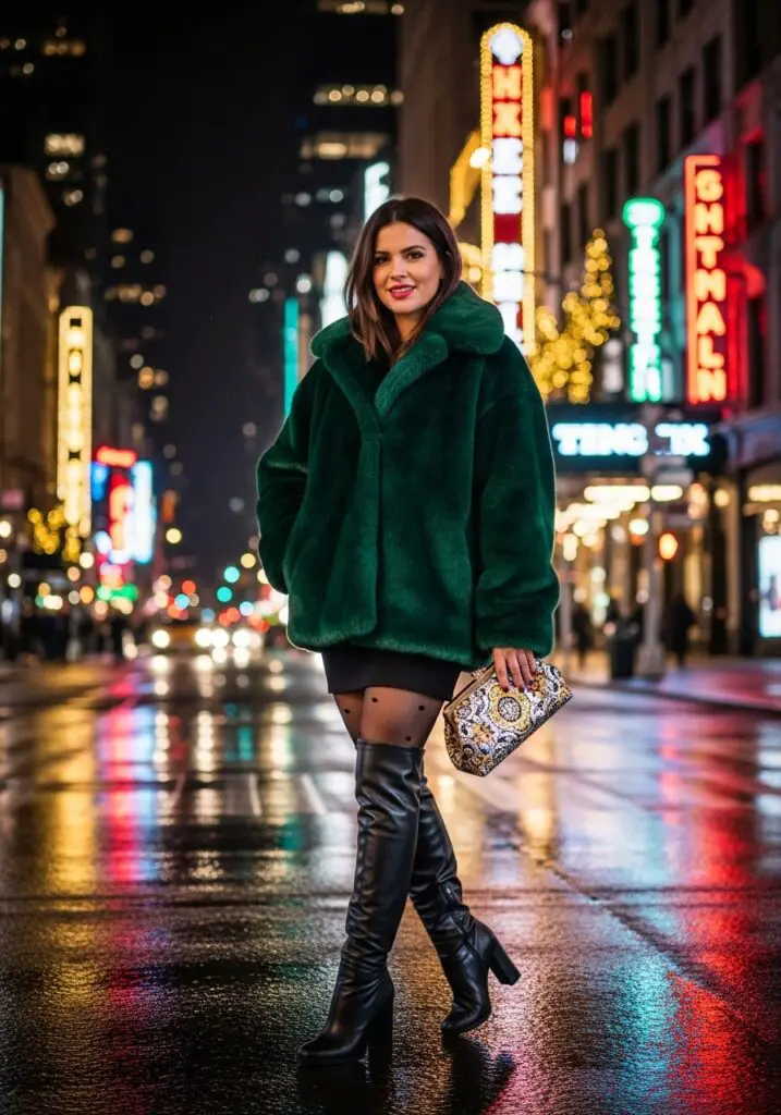 A bold winter styling moment for fashion-forward Christmas In New York Outfits.