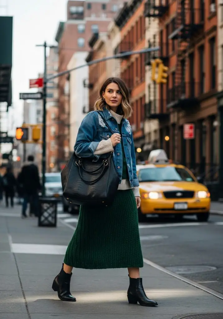 12. Denim Jacket & Wool Midi Skirt