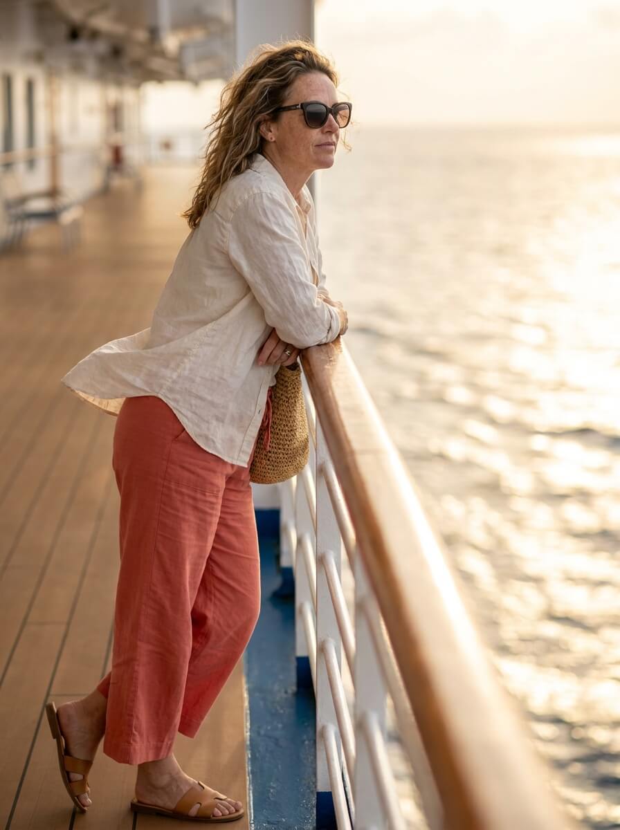 Every look here is built for real moments: walking decks, seaside dinners, casual ports. These aren’t trends for trends’ sake — they’re wearable, breathable, and worth the suitcase space.