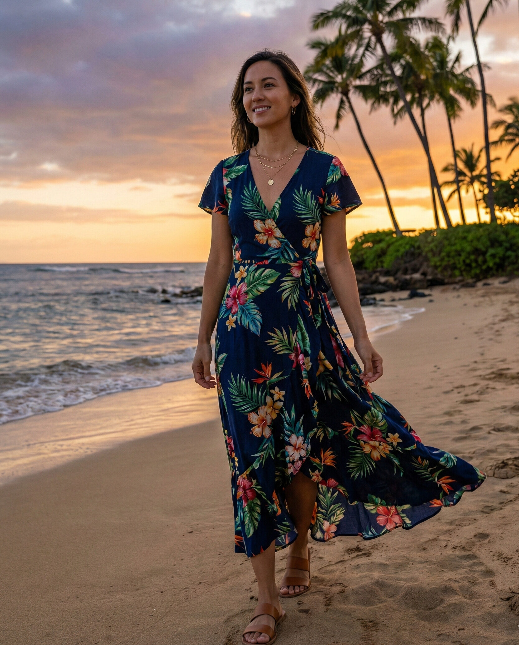Wrap dresses are flattering and perfect for Hawaii’s breezy weather. Lightweight fabrics and tropical prints enhance comfort and style. Pair with flat sandals and delicate jewelry for a versatile outfit that works day to night.