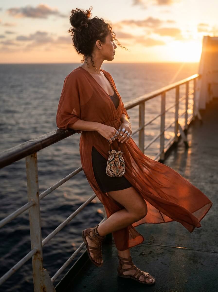 Here’s the fix: every outfit in this guide is built for actual cruise life. Think breathable fabrics, effortless layers, and pieces that move with you from breakfast decks to sunset strolls. Nothing fussy, nothing wasted.